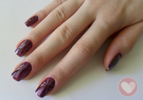 Assim, o imã alinha as partículas de metal e o desenho surge. Como exemplo, usamos o Tango Magnetic Nail Polish - Color 9 (Roxo)