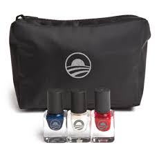 Além das roupas, bolsas e lenços, a marca também lançou um trio de esmaltes, com as cores da bandeira dos Estados Unidos.